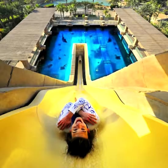 β Aquaventure Waterpark + Lost Chambers Aquarium offers an action-packed day at Dubai’s premier waterpark, followed by an enchanting visit to the Lost Chambers Aquarium.